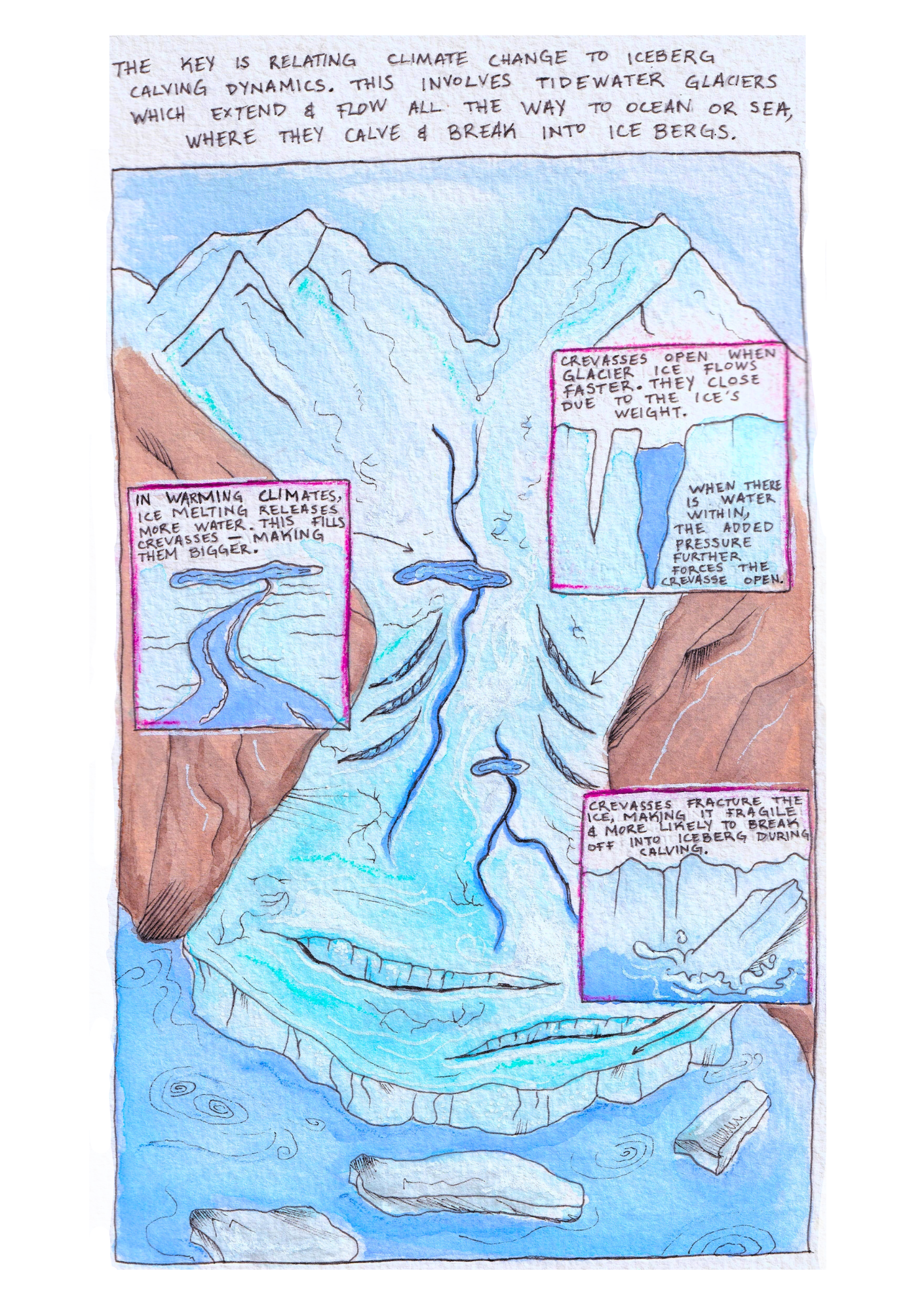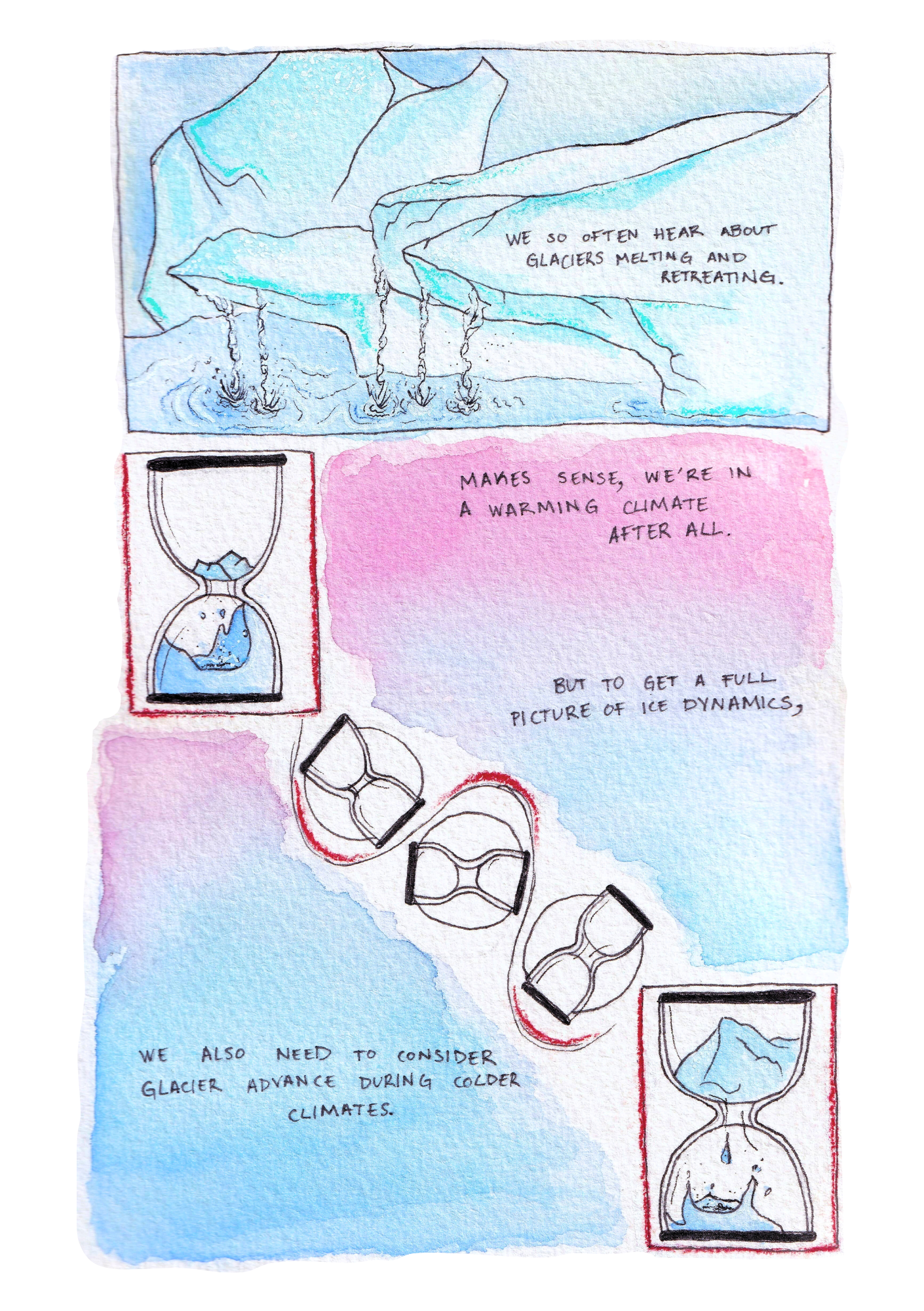 This is my very first comic and the origin of my science communication journey. It presents the fundamental glaciological concepts and data which underpin my PhD research.
